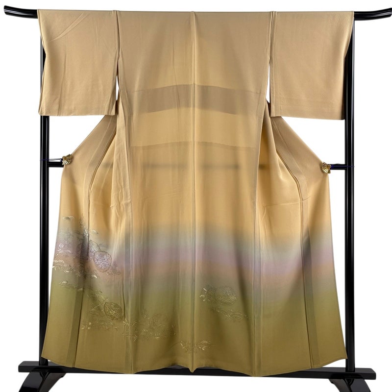 【着物ランク】秀品 【素材】正絹 【身丈】約156cm 【裄丈】約67cm 【袖丈】約47.5cm 【袖幅】約33.5cm 【前幅】約25.5cm 【後幅】約31cm 【サイズ】M 【着物仕立て】単衣 【着用時期】6/9月 【状態ランク】ランクB 【着物着用シーン】披露宴出席、式典、パーティー、格式ある茶会