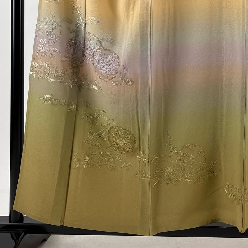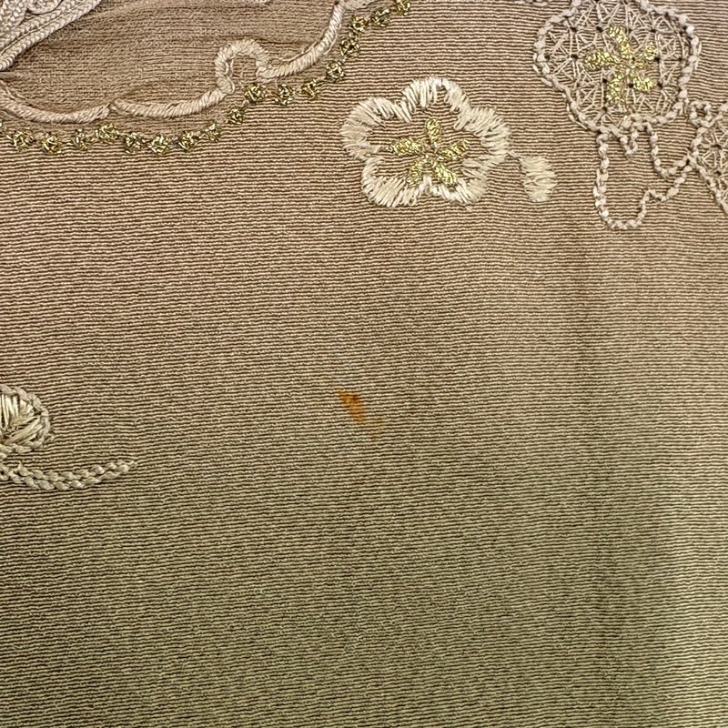既婚、未婚問わず着用できる色留袖でございます。 汎用性が高いお着物となっておりますので、この機会にぜひいかがでしょうか。 ※身丈・裄丈の縫込みの長さは測っておりません。 上前にシミ、衿周りに薄汚れ、表地所々にシワがございます。 居敷当てにシミがございます。 リユース品としては良い状態で、まだまだご活用頂けると思われます。 ※なお、厳しく商品の状態確認を行っておりますが、記載の汚れ以外にも見落とし箇所がある可能性がある旨ご了承いただけますと幸いです。 沢山の商品の中からご覧いただき誠にありがとうございます。 ※裏地に化繊の生地を使用しております。