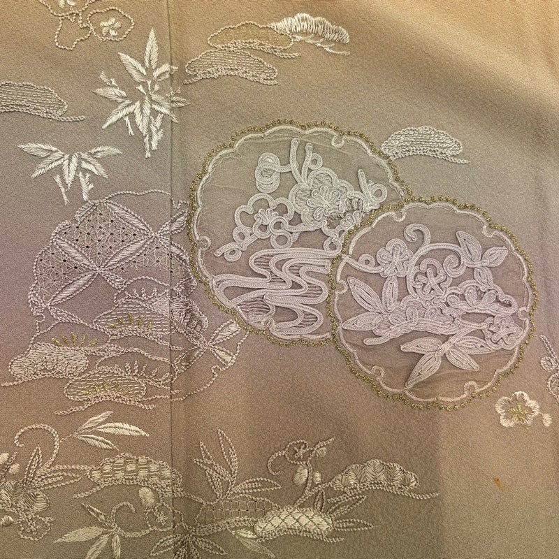 【色留袖】 白系 ベージュ 秀品 B 約150cm~約159cm 裄丈67cm-68cm (M)size 袖丈47cm 9990-29990 二万以下