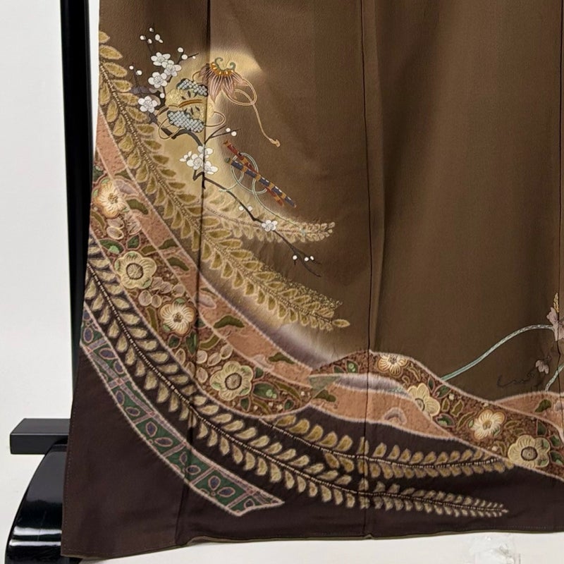 【色留袖】 茶系 茶色 秀品 B 約160cm~約169cm 裄丈69cm以上 (L)size 袖丈50cm-60cm 4000-7980 二万以下