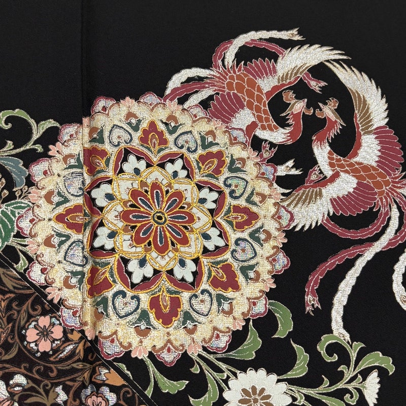 【黒留袖】 黒系 黒 秀品 A 約170cm~約179cm 裄丈67cm-68cm (L)size 袖丈50cm-60cm 7990-9980 美品 二万以下