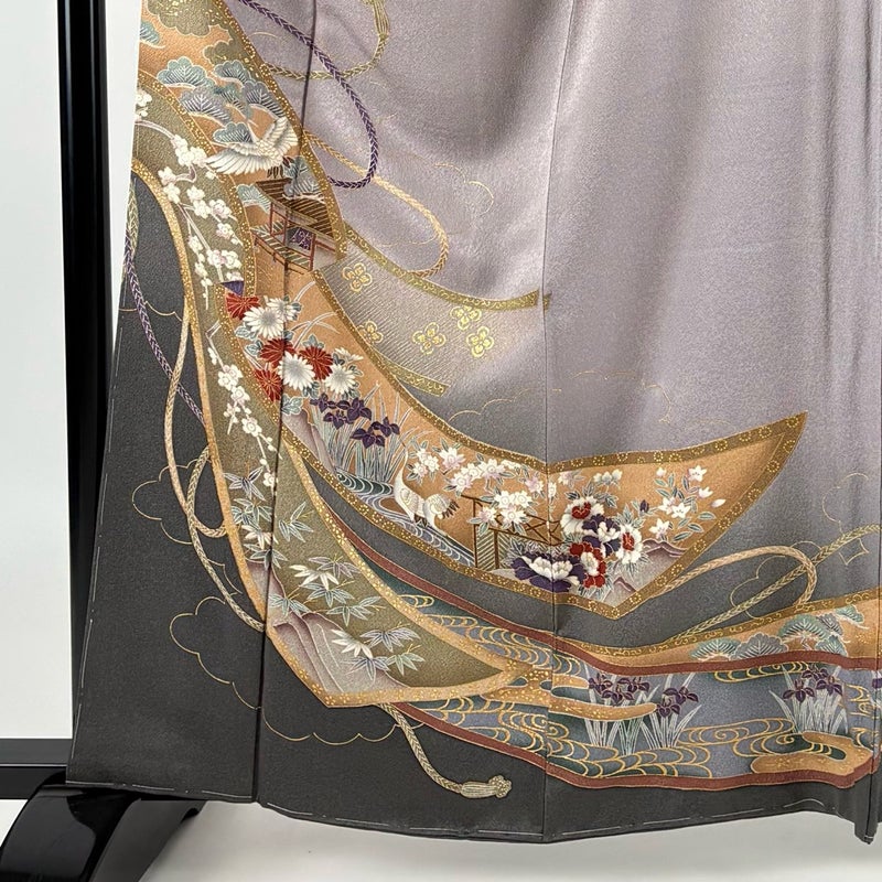 【色留袖】 灰色系 灰紫 秀品 B 約160cm~約169cm 裄丈63cm-64cm (M)size 袖丈49cm 4000-7980 二万以下