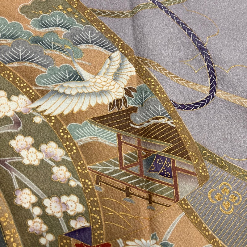 【着物ランク】秀品 【素材】正絹 【身丈】約162.5cm 【裄丈】約64cm 【袖丈】約49cm 【袖幅】約32.5cm 【前幅】約25cm 【後幅】約31.5cm 【サイズ】M 【着物仕立て】袷 【着用時期】10~5月 【状態ランク】ランクB 【着物着用シーン】披露宴出席、式典、パーティー、格式ある茶会