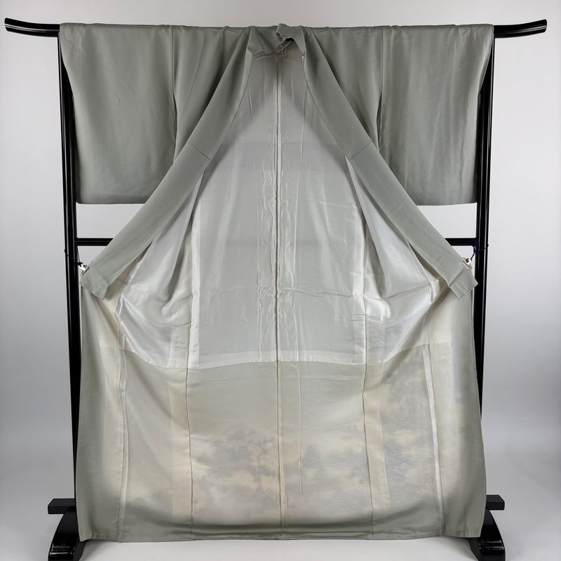 【色留袖】 灰色系 灰緑 秀品 B 約170cm~約179cm 裄丈65cm (M)size 袖丈50cm-60cm 4000-7980 二万以下