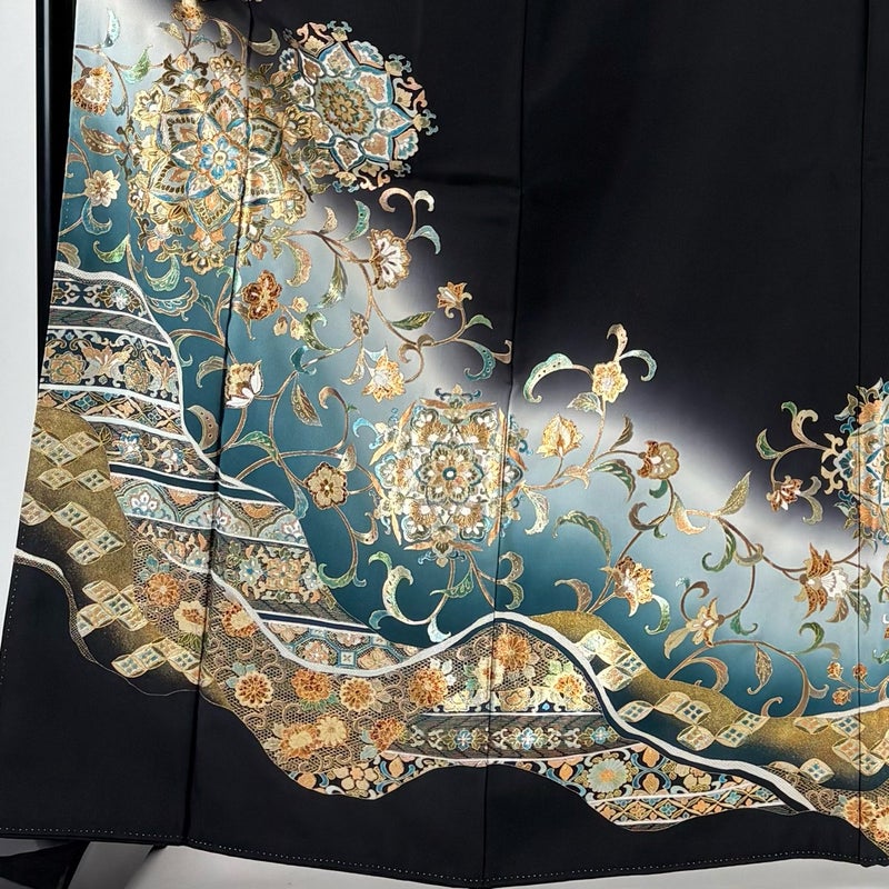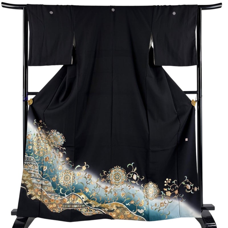 【黒留袖】 黒系 黒 秀品 B 約160cm~約169cm 裄丈63cm-64cm (M)size 袖丈48cm 4000-7980 二万以下