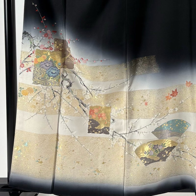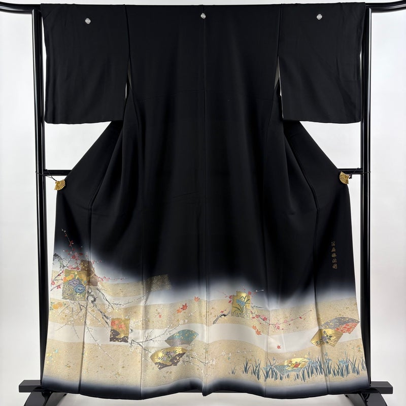 【黒留袖】 黒系 黒 秀品 B 約160cm~約169cm 裄丈63cm-64cm (S)size 袖丈49cm 4000-7980 二万以下