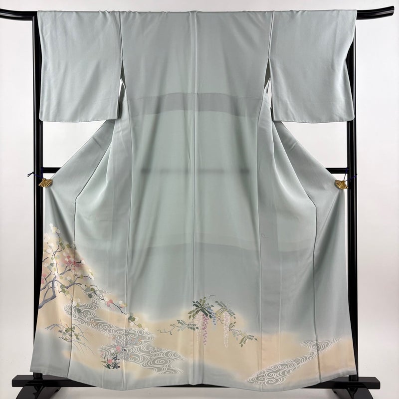 【色留袖】 緑系 薄緑 秀品 B 約150cm~約159cm 裄丈66cm (M)size 袖丈47cm 4000-7980 二万以下