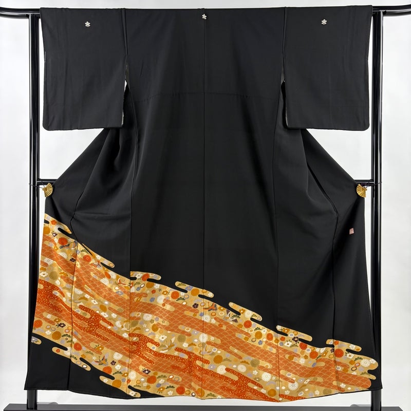 【黒留袖】 黒系 黒 優品 B 約150cm~約159cm 裄丈62cm以下 (S)size 袖丈47cm -3980 二万以下