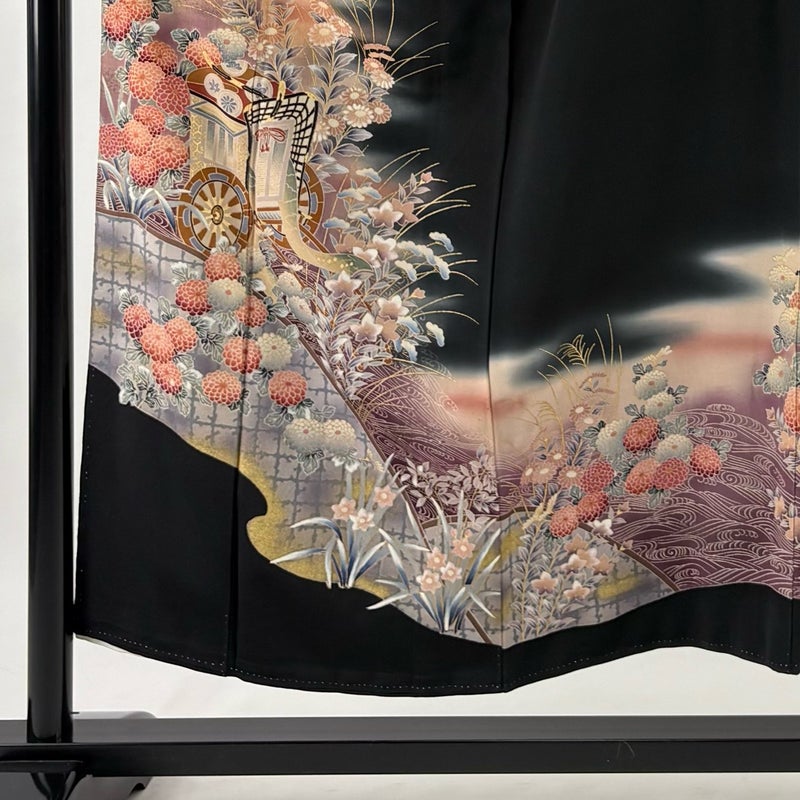 【黒留袖】 黒系 黒 優品 B 約150cm~約159cm 裄丈63cm-64cm (S)size 袖丈49cm -3980 二万以下