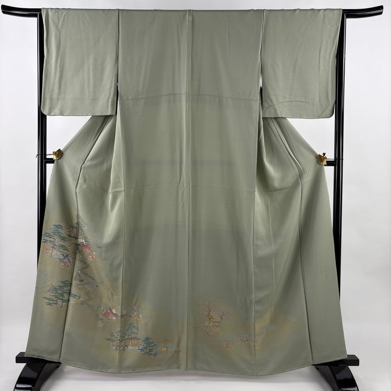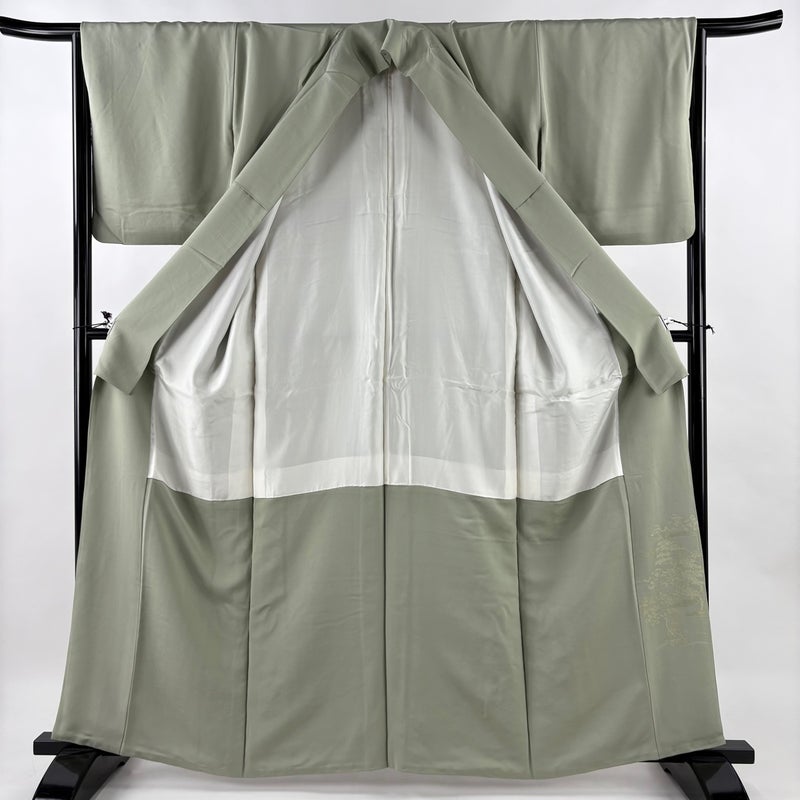 【色留袖】 灰色系 灰緑 優品 B 約160cm~約169cm 裄丈66cm (M)size 袖丈47cm -3980 二万以下