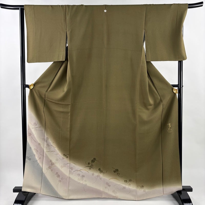【色留袖】 茶系 茶緑色 名品 B 約160cm~約169cm 裄丈66cm (M)size 袖丈47cm 9990-29990 二万以下