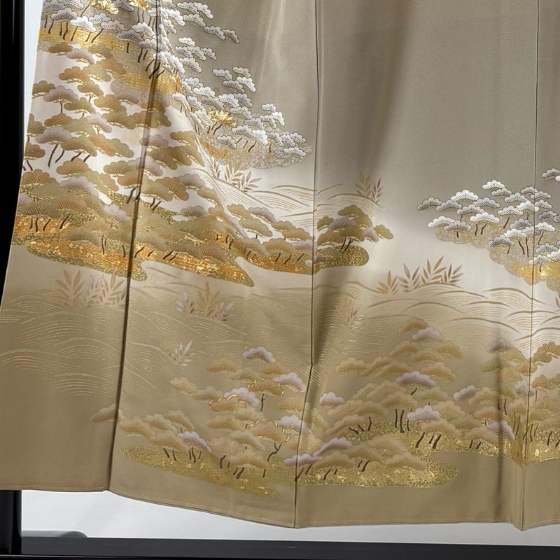 【色留袖】 灰色系 灰茶 秀品 B 約150cm~約159cm 裄丈62cm以下 (S)size 袖丈46cm以下 4000-7980 二万以下