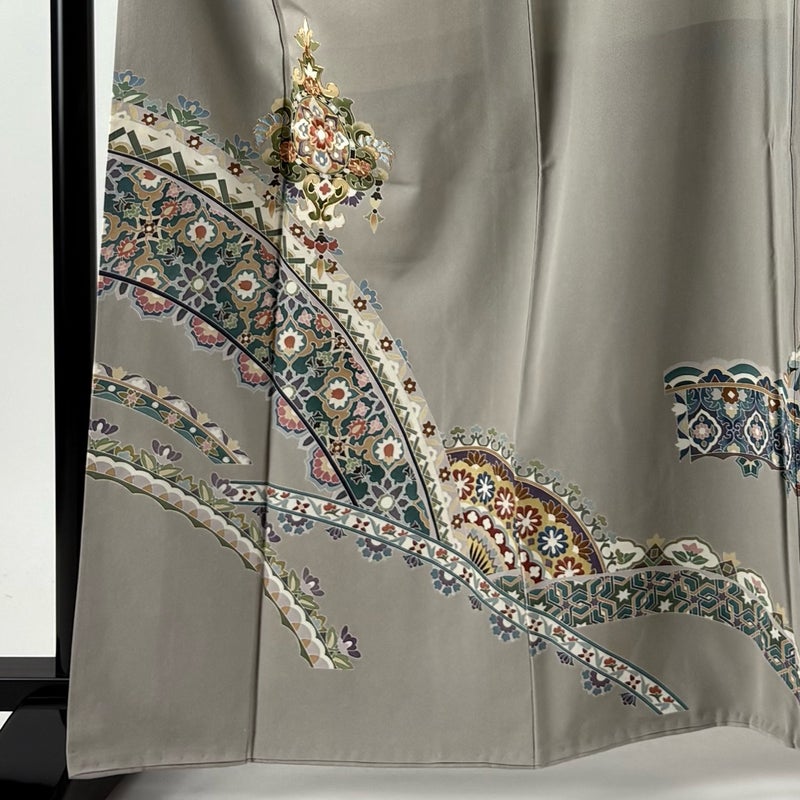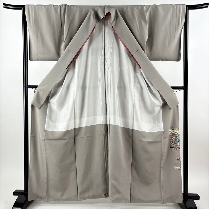 【色留袖】 灰色系 灰茶 秀品 B 約160cm~約169cm 裄丈65cm (M)size 袖丈46cm以下 4000-7980 二万以下