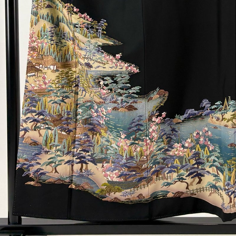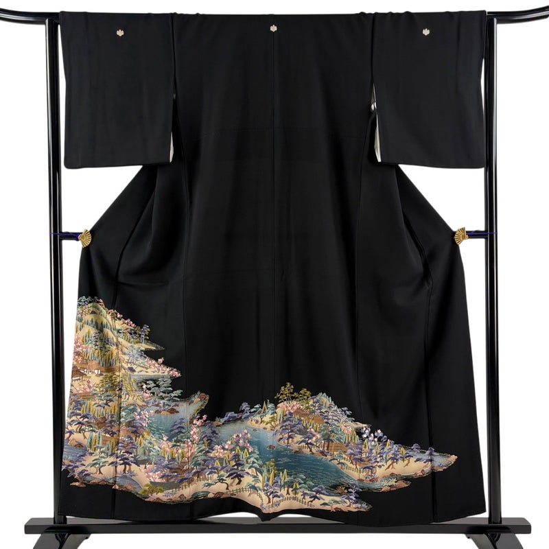 【黒留袖】 黒系 黒 秀品 B 約150cm~約159cm 裄丈63cm-64cm (S)size 袖丈48cm 4000-7980 二万以下