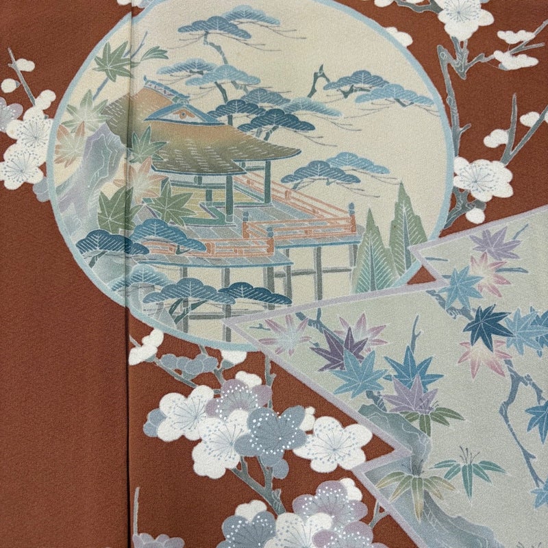 【色留袖】 赤系 赤茶 名品 B 約150cm~約159cm 裄丈63cm-64cm (M)size 袖丈46cm以下 9990-29990 二万以下