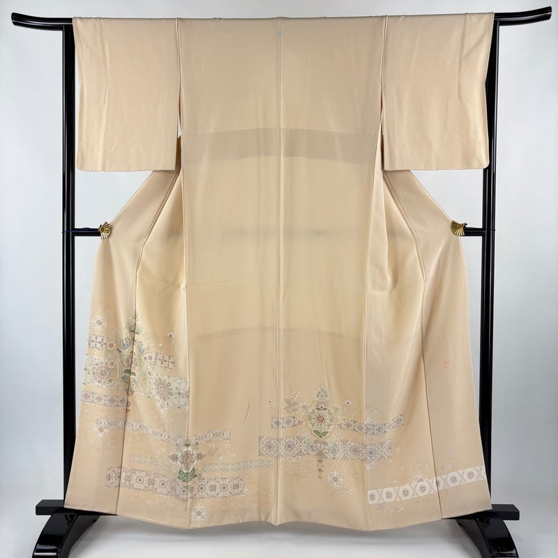 【色留袖】 赤系 ピンクベージュ 秀品 B 約160cm~約169cm 裄丈63cm-64cm (M)size 袖丈48cm 4000-7980 二万以下