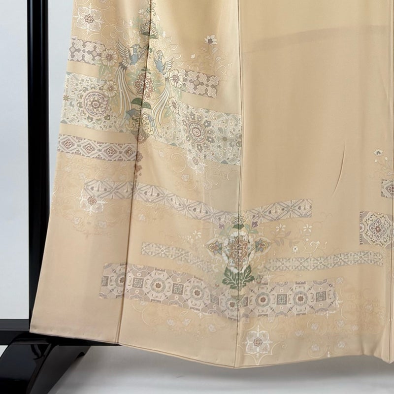 【着物ランク】秀品 【素材】正絹 【身丈】約160.5cm 【裄丈】約64.5cm 【袖丈】約48.5cm 【袖幅】約32.5cm 【前幅】約23cm 【後幅】約31cm 【サイズ】M 【着物仕立て】袷 【着用時期】10~5月 【状態ランク】ランクB 【着物着用シーン】披露宴出席、式典、パーティー、格式ある茶会