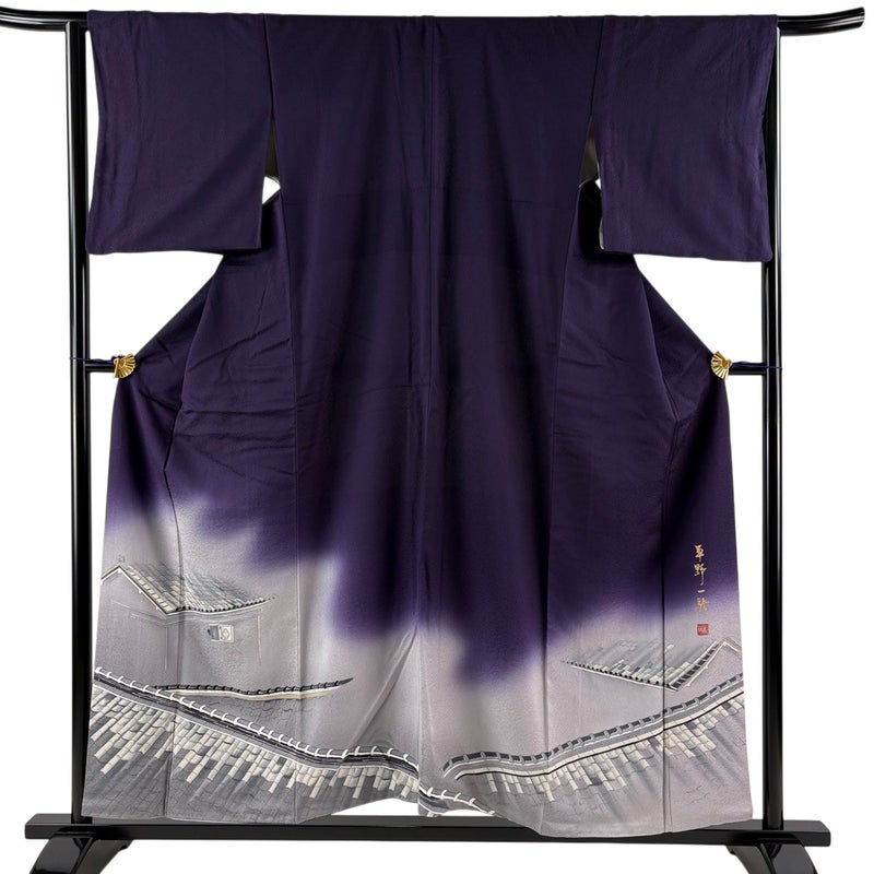【着物ランク】名品 【素材】正絹 【身丈】約155cm 【裄丈】約65cm 【袖丈】約49cm 【袖幅】約32cm 【前幅】約25cm 【後幅】約30cm 【サイズ】M 【着物仕立て】袷 【着用時期】10~5月 【状態ランク】ランクB 【作家名】草野一騎 【着物着用シーン】披露宴出席、式典、パーティー、格式ある茶会