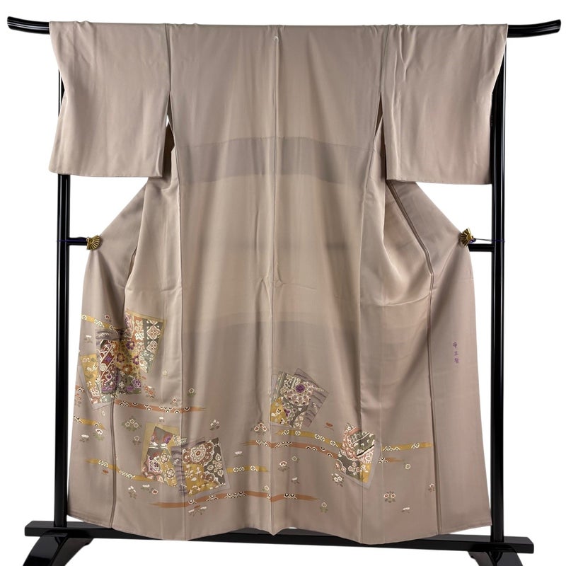 【着物ランク】名品 【素材】正絹 【身丈】約156.5cm 【裄丈】約68cm 【袖丈】約49cm 【袖幅】約36cm 【前幅】約24.5cm 【後幅】約30.5cm 【サイズ】L 【着物仕立て】袷 【着用時期】10~5月 【状態ランク】ランクC 【作家名】帝王紫 【着物着用シーン】披露宴出席、式典、パーティー、格式ある茶会