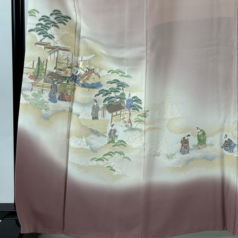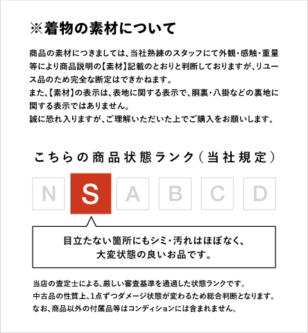 【着物ランク】秀品 【素材】正絹 【身丈】約165cm 【裄丈】約67cm 【袖丈】約48cm 【袖幅】約34.5cm 【前幅】約24.5cm 【後幅】約30cm 【サイズ】M 【着物仕立て】袷 【着用時期】10~5月 【状態ランク】ランクS 【着物着用シーン】披露宴出席、式典、パーティー、格式ある茶会