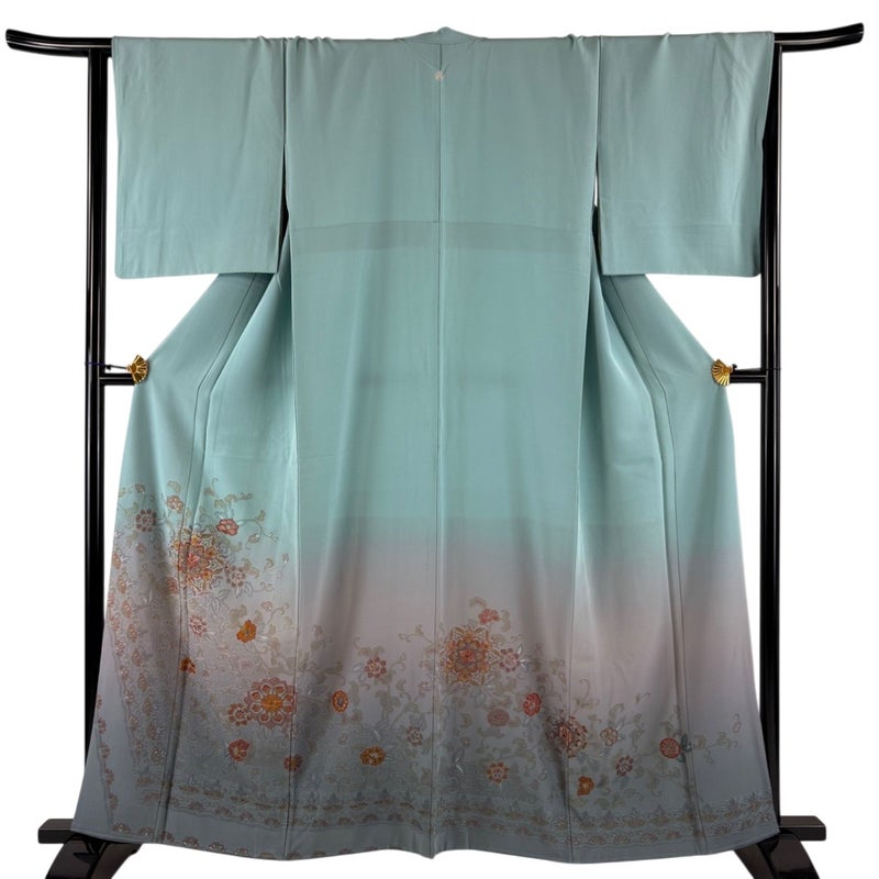 【色留袖】 青系 水色 秀品 B 約160cm~約169cm 裄丈65cm (M)size 袖丈48cm 4000-7980 二万以下