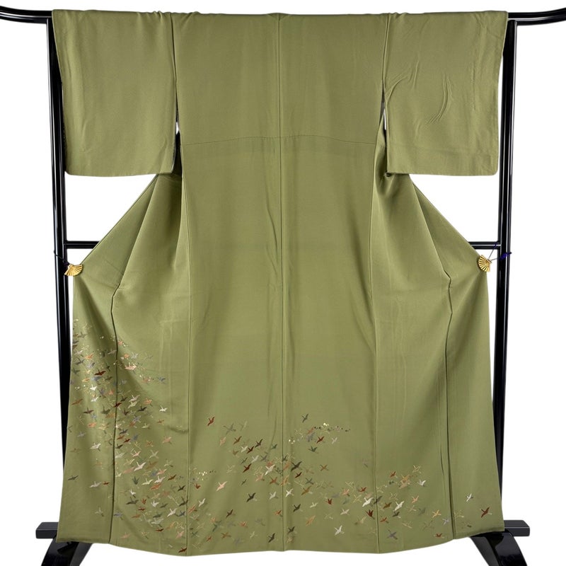 【色留袖】 緑系 よもぎ色 秀品 B 約160cm~約169cm 裄丈65cm (S)size 袖丈48cm 7990-9980 二万以下