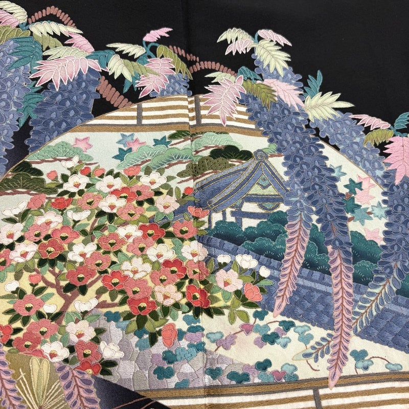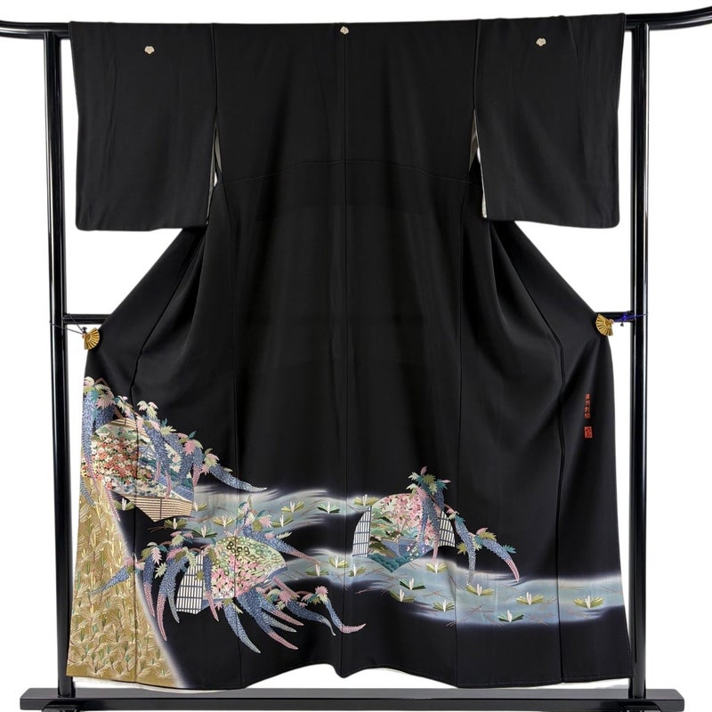 【黒留袖】 黒系 黒 秀品 C 約150cm~約159cm 裄丈62cm以下 (S)size 袖丈48cm 4000-7980 二万以下