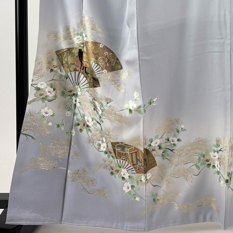 【色留袖】 灰色系 青灰色 秀品 B 約160cm~約169cm 裄丈66cm (M)size 袖丈48cm 4000-7980 二万以下