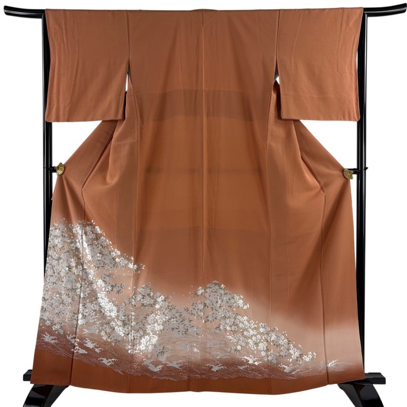 【着物ランク】秀品 【素材】正絹 【身丈】約163cm 【裄丈】約65.5cm 【袖丈】約49cm 【袖幅】約33.5cm 【前幅】約25cm 【後幅】約30.5cm 【サイズ】M 【着物仕立て】袷 【着用時期】10~5月 【状態ランク】ランクB 【着物着用シーン】披露宴出席、式典、パーティー、格式ある茶会