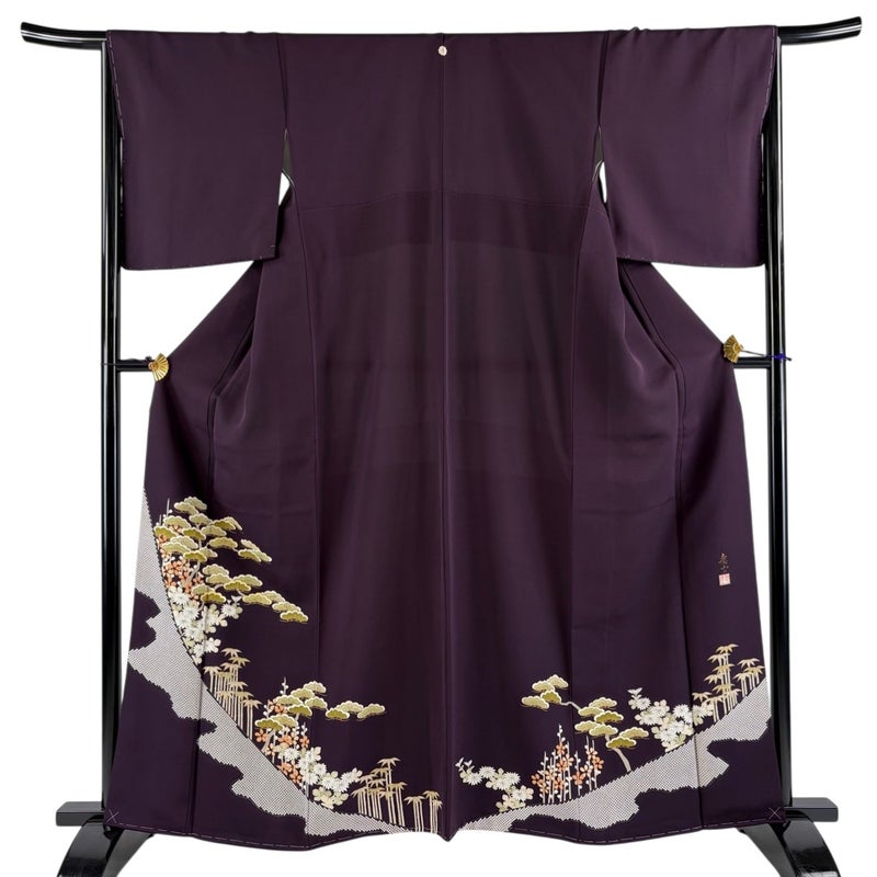 【着物ランク】秀品 【素材】正絹 【身丈】約162cm 【裄丈】約66cm 【袖丈】約49cm 【袖幅】約33cm 【前幅】約24.5cm 【後幅】約30cm 【サイズ】M 【着物仕立て】袷 【着用時期】10~5月 【状態ランク】ランクB 【着物着用シーン】披露宴出席、式典、パーティー、格式ある茶会