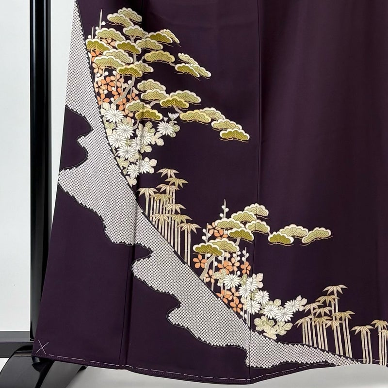 【色留袖】 紫系 濃紫 秀品 B 約160cm~約169cm 裄丈66cm (M)size 袖丈49cm 4000-7980 二万以下