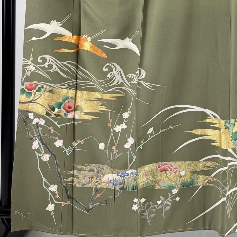 【色留袖】 茶系 茶緑色 秀品 B 約160cm~約169cm 裄丈67cm-68cm (M)size 袖丈48cm 4000-7980 二万以下