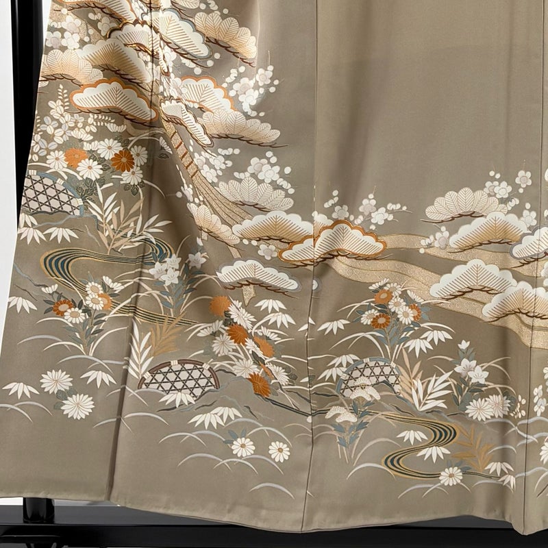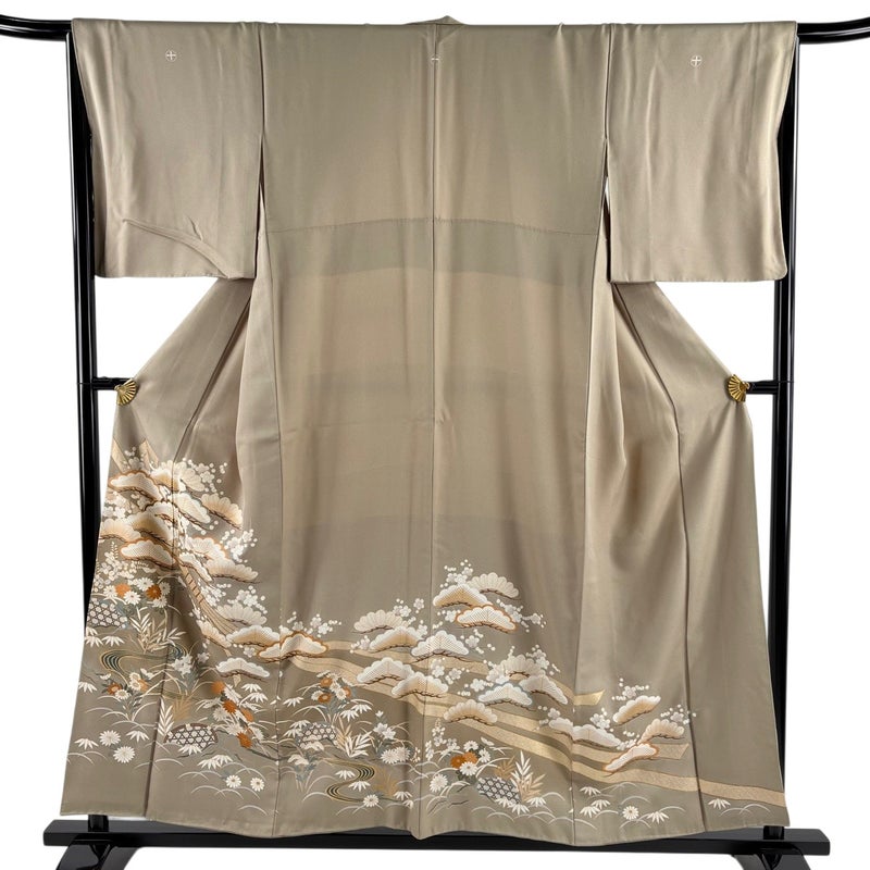 【色留袖】 灰色系 灰緑 秀品 B 約150cm~約159cm 裄丈65cm (M)size 袖丈48cm 4000-7980 二万以下