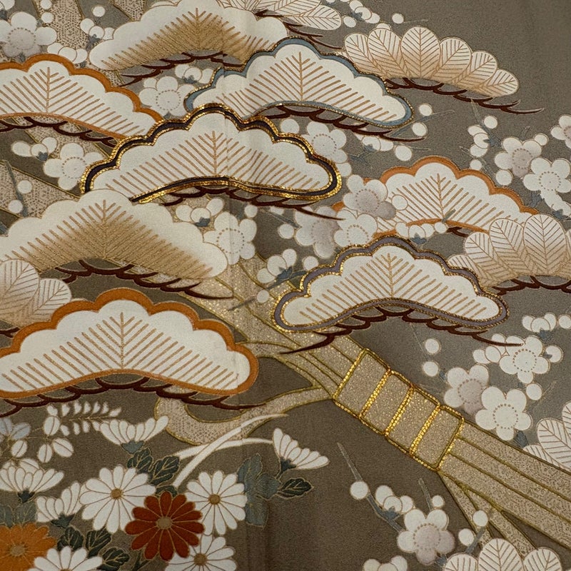 【着物ランク】秀品 【素材】正絹 【身丈】約157cm 【裄丈】約65cm 【袖丈】約48.5cm 【袖幅】約34cm 【前幅】約26.5cm 【後幅】約32cm 【サイズ】M 【着物仕立て】袷 【着用時期】10~5月 【状態ランク】ランクB 【着物着用シーン】披露宴出席、式典、パーティー、格式ある茶会