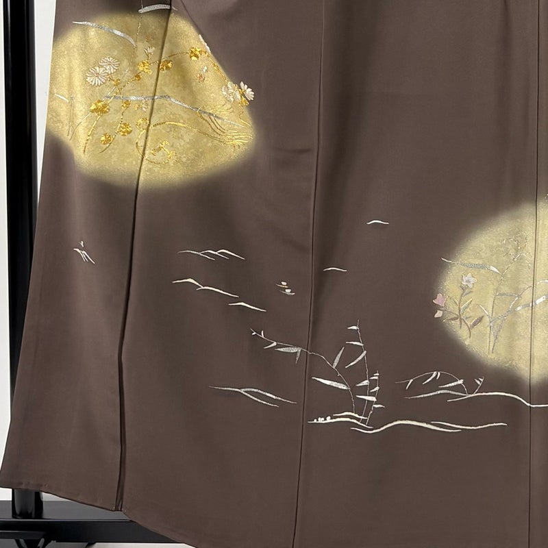 【色留袖】 茶系 焦茶色 秀品 B 約150cm~約159cm 裄丈63cm-64cm (S)size 袖丈47cm 4000-7980 二万以下