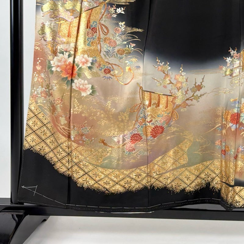 【黒留袖】 黒系 黒 秀品 C 約150cm~約159cm 裄丈65cm (M)size 袖丈48cm 4000-7980 二万以下