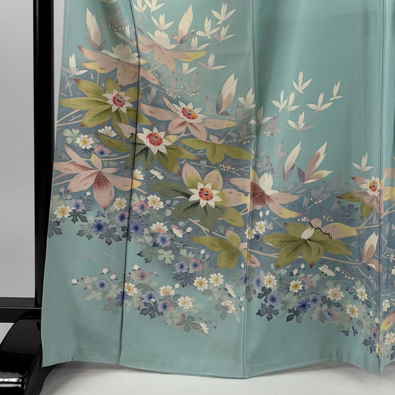 【色留袖】 緑系 薄緑 秀品 B 約160cm~約169cm 裄丈66cm (M)size 袖丈49cm 4000-7980 二万以下