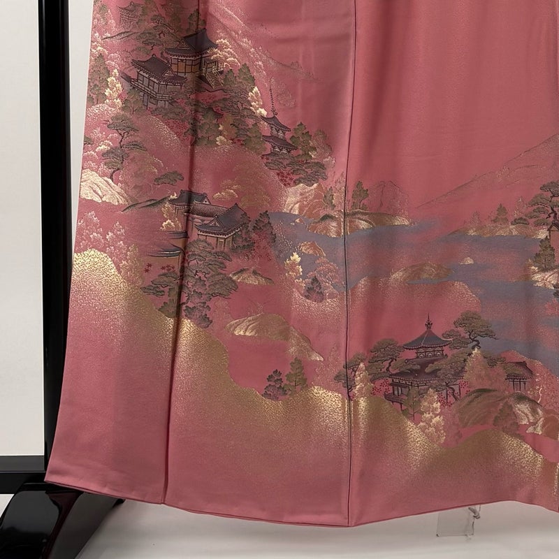 【色留袖】 赤系 ピンク 優品 B 約160cm~約169cm 裄丈65cm (M)size 袖丈49cm -3980 二万以下