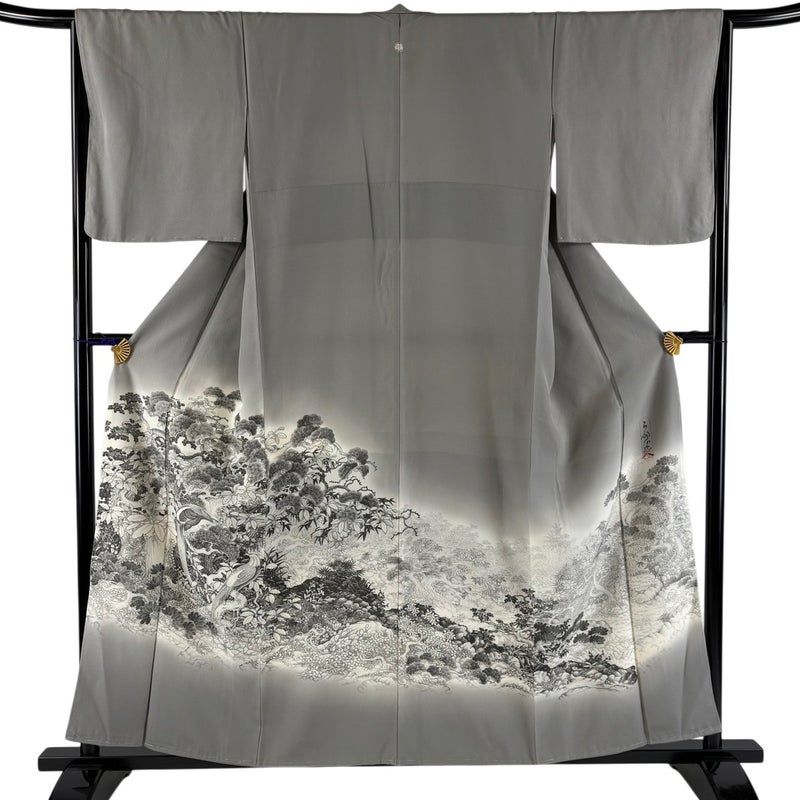 【色留袖】 灰色系 灰色 逸品 B 約150cm~約159cm 裄丈65cm (M)size 袖丈48cm 9990-29990 五万以下