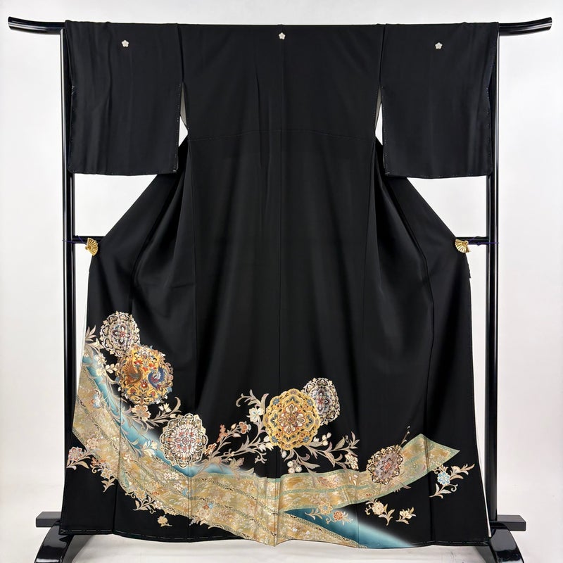 【黒留袖】 黒系 黒 秀品 B 約160cm~約169cm 裄丈66cm (M)size 袖丈49cm 9990-29990 五万以下
