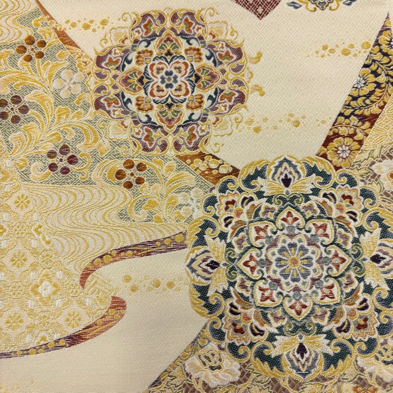 【着物ランク】秀品 【素材】正絹 【身丈】約164cm 【裄丈】約66.5cm 【袖丈】約49cm 【袖幅】約34cm 【前幅】約24cm 【後幅】約30cm 【サイズ】M 【着物仕立て】袷 【着用時期】10~5月 【帯丈2】約436cm 【帯幅2】約31cm 【状態ランク】ランクB 【着物着用シーン】披露宴の母親/仲人夫人