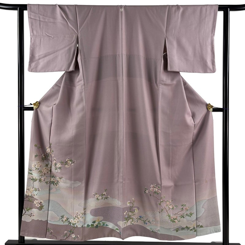 【着物ランク】優品 【素材】正絹 【身丈】約152.5cm 【裄丈】約62cm 【袖丈】約45cm 【袖幅】約31.5cm 【前幅】約24cm 【後幅】約28cm 【サイズ】S 【着物仕立て】袷 【着用時期】10~5月 【状態ランク】ランクA 【着物着用シーン】披露宴出席、式典、パーティー、格式ある茶会