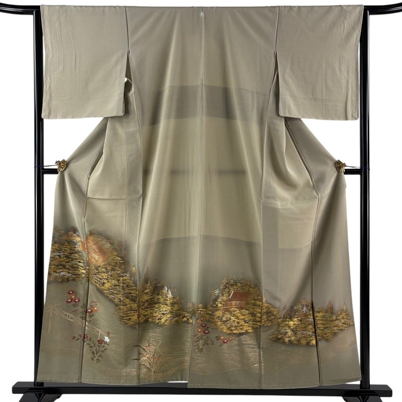 【色留袖】 灰色系 灰茶 優品 A 約150cm~約159cm 裄丈63cm-64cm (S)size 袖丈47cm 4000-7980 美品 二万以下