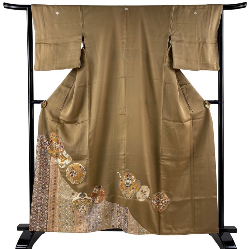 【色留袖】 茶系 薄茶色 優品 B 約150cm~約159cm 裄丈65cm (M)size 袖丈47cm -3980 二万以下