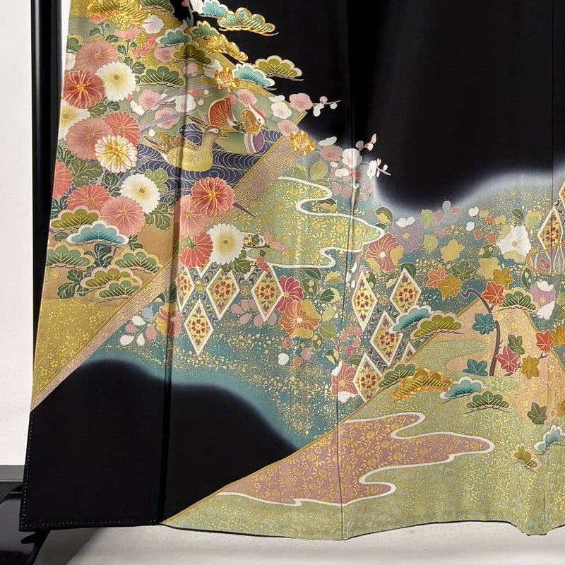 【黒留袖】 黒系 黒 優品 B 約160cm~約169cm 裄丈63cm-64cm (S)size 袖丈49cm -3980 二万以下