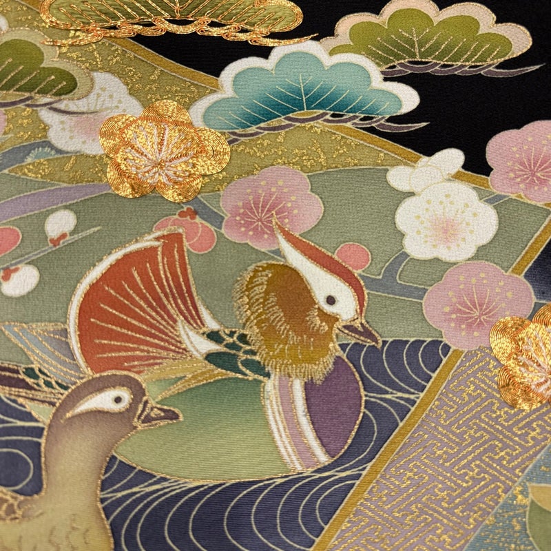 【着物ランク】優品 【素材】正絹 【身丈】約162cm 【裄丈】約63cm 【袖丈】約49cm 【袖幅】約32.5cm 【前幅】約23.5cm 【後幅】約30cm 【サイズ】S 【着物仕立て】袷 【着用時期】10~5月 【状態ランク】ランクB 【着物着用シーン】披露宴の母親/仲人夫人