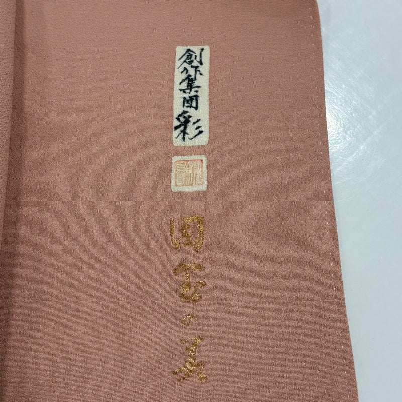 【色留袖】 赤系 ピンクベージュ 優品 B 約150cm~約159cm 裄丈62cm以下 (S)size 袖丈48cm -3980 二万以下