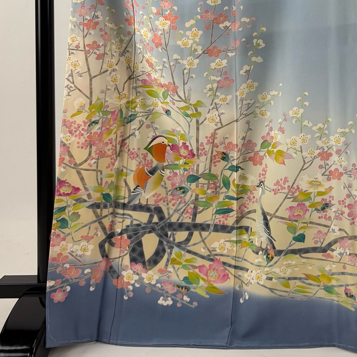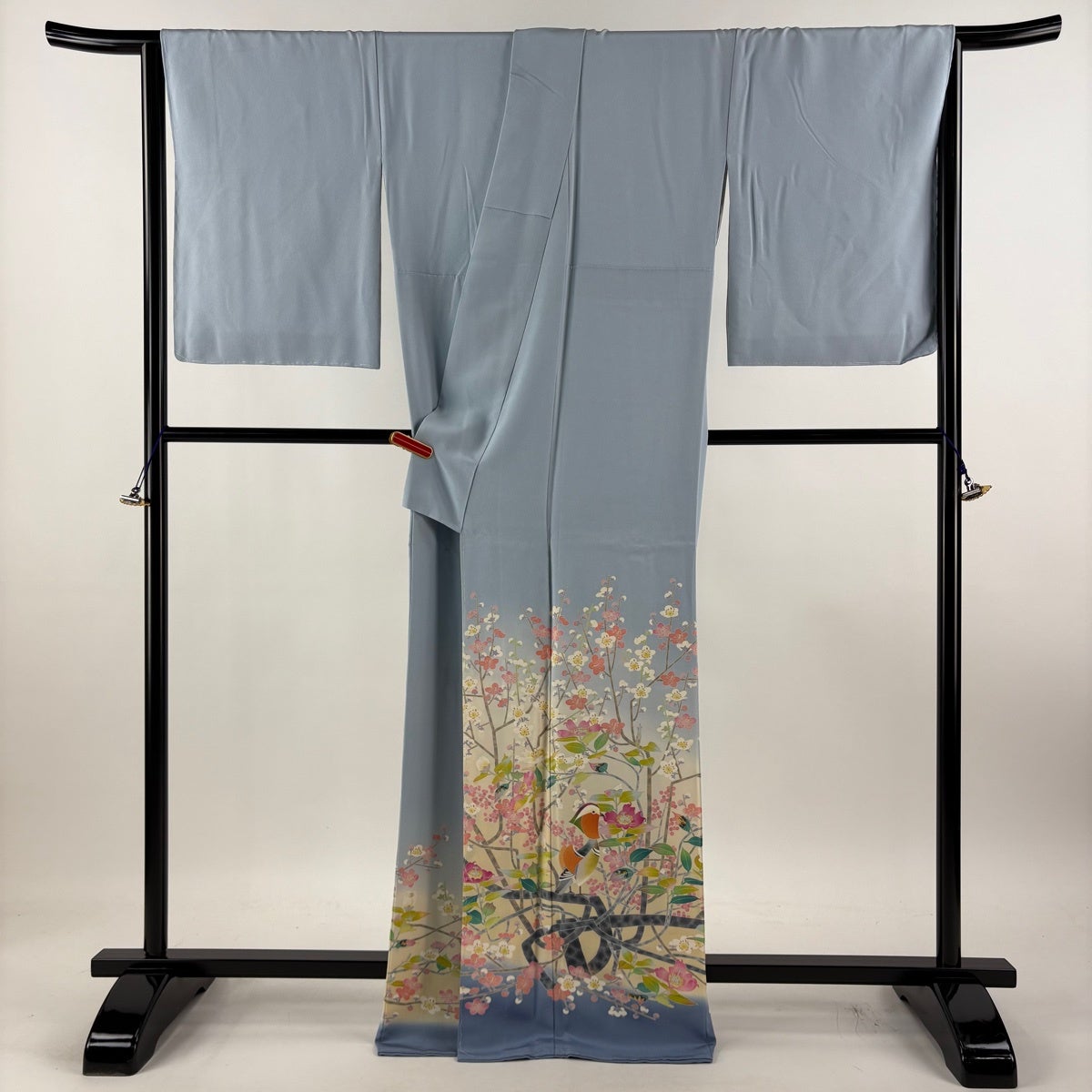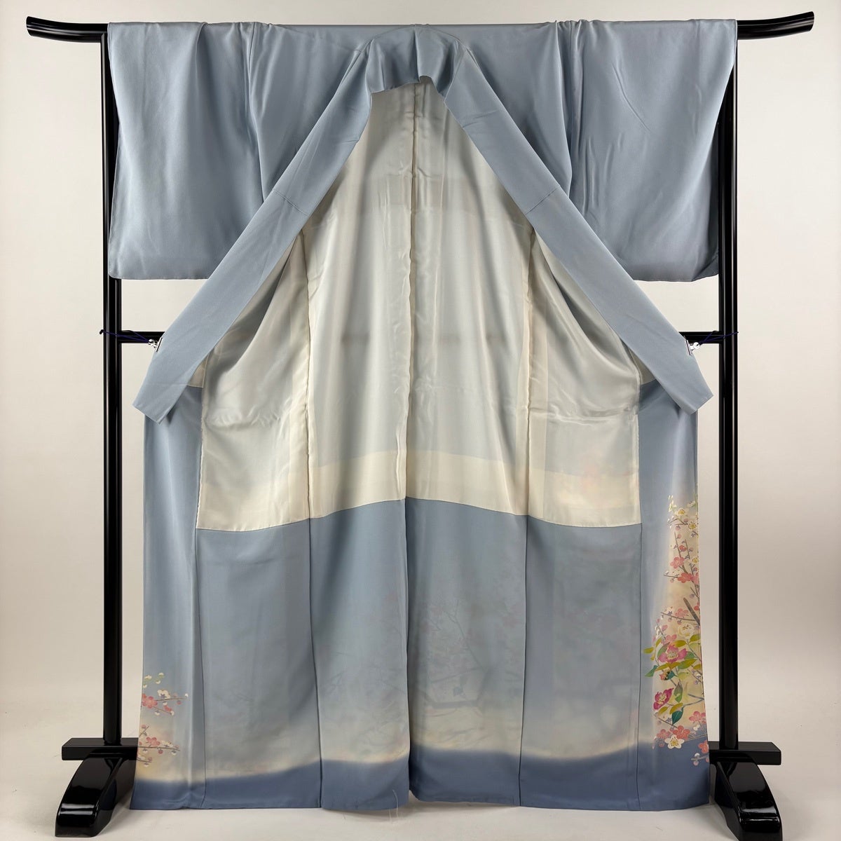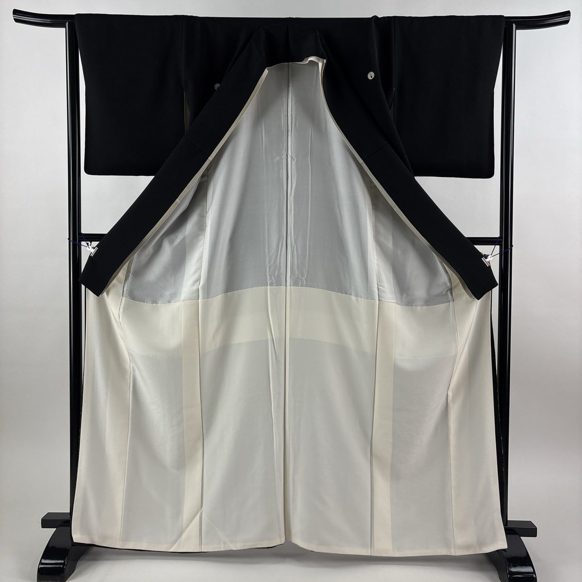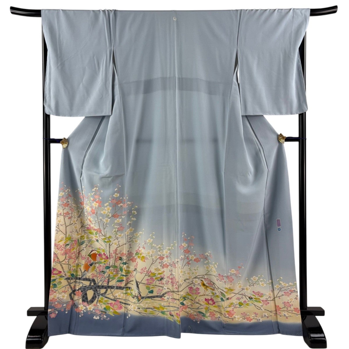 留袖は柄付けが裾にのみ絵羽模様で入っており、黒留袖と色留袖という二つに分ける事ができ、色留袖は1、3、5と紋の数が増えるほど格式が上がり比較的に様々なシーンでご着用が出来ます。 黒留袖は五つ紋で既婚女性の第1礼装となり最もフォーマルな着物です。 黒留袖は現代では結婚式で着用されるのがほとんどですので一度は見かけた事のある着物かと思います。 その昔は女性が18歳になった時、又は結婚した時に大人の女性になったとして、振袖の長い袖を切って短くした事で出来たと言われており、この風習が『留袖』と言われておりそのまま留袖という名前が定着していきました。