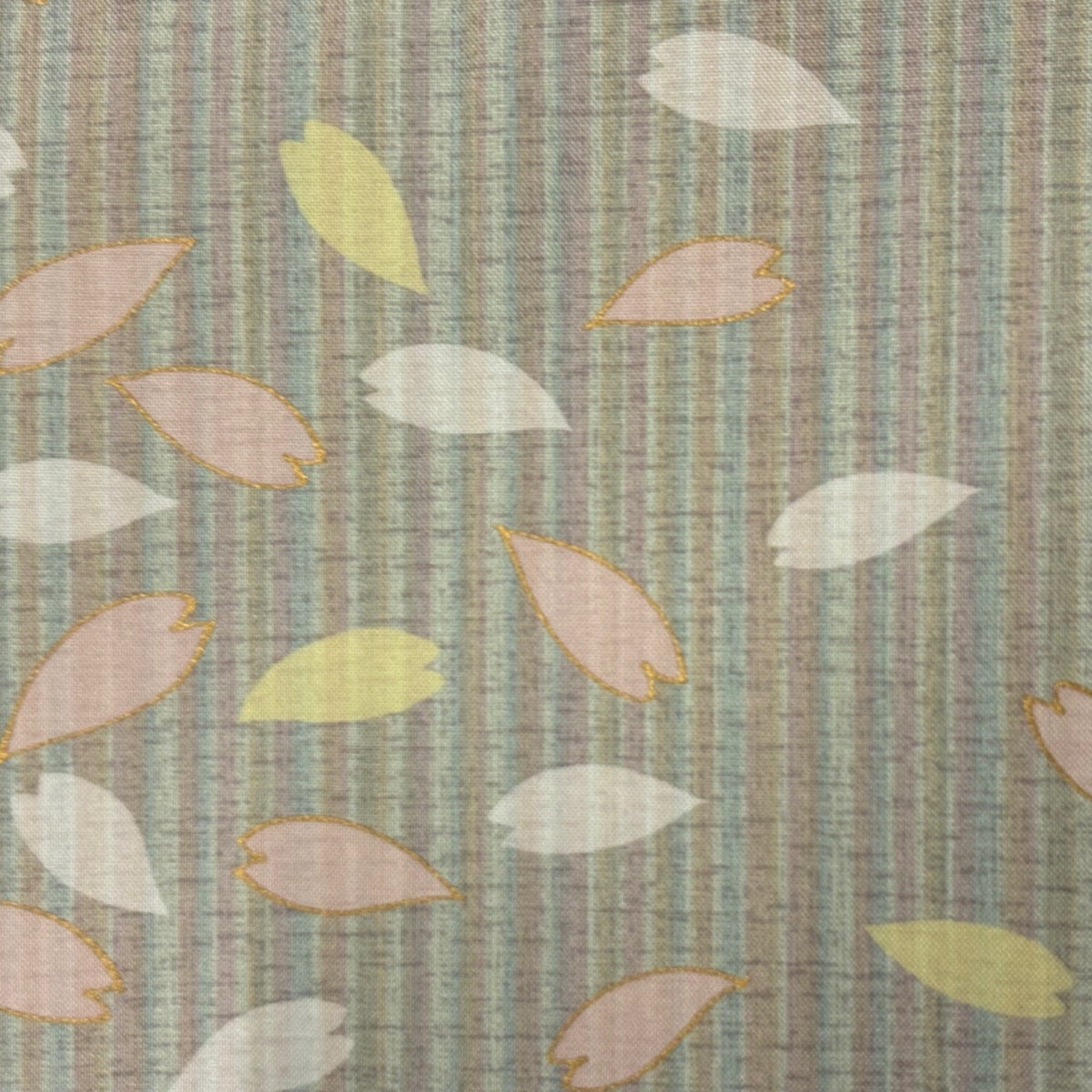 【美品】 付下げ 身丈159.5cm 裄丈66cm M 袷 袋帯セット 紬地 花びら 縦縞 金彩 灰緑 正絹 秀品