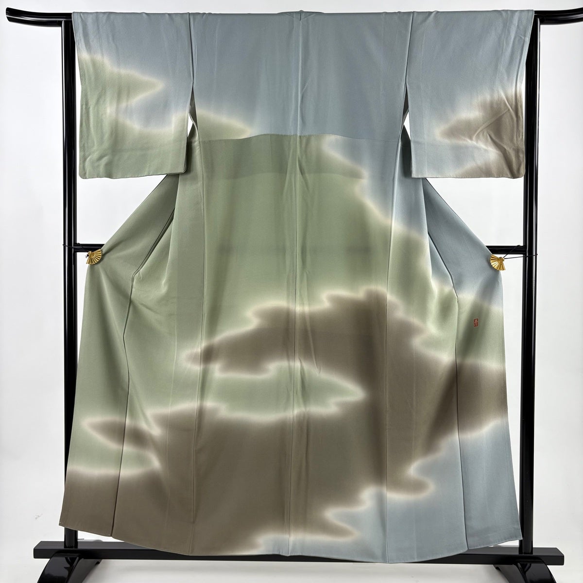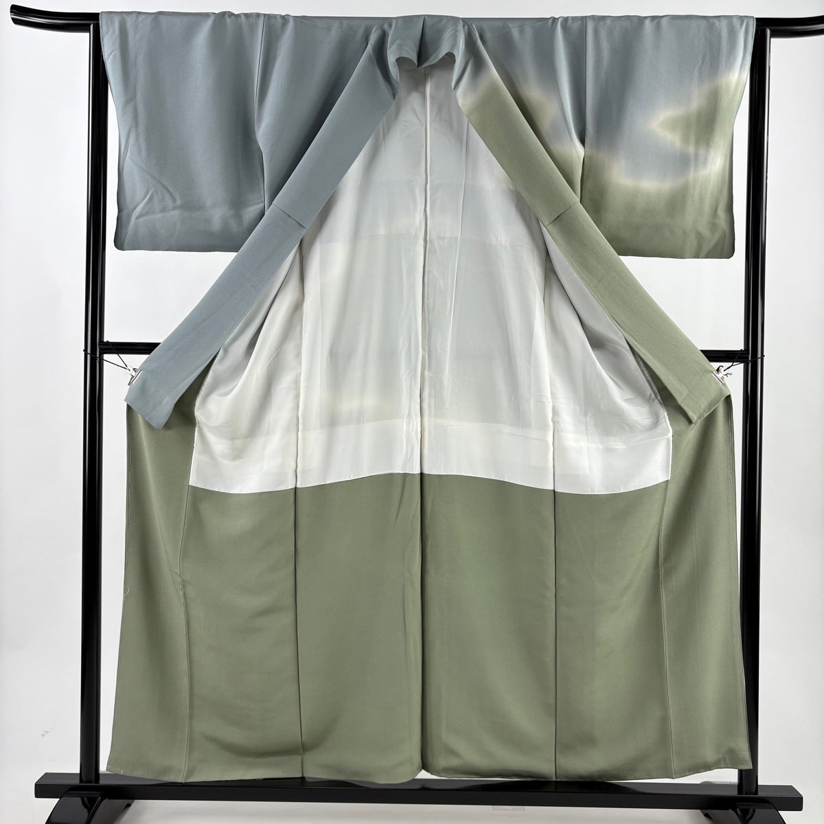 付下げ 身丈161.5cm 裄丈65cm M 袷 枝花 ぼかし 薄緑 正絹 秀品